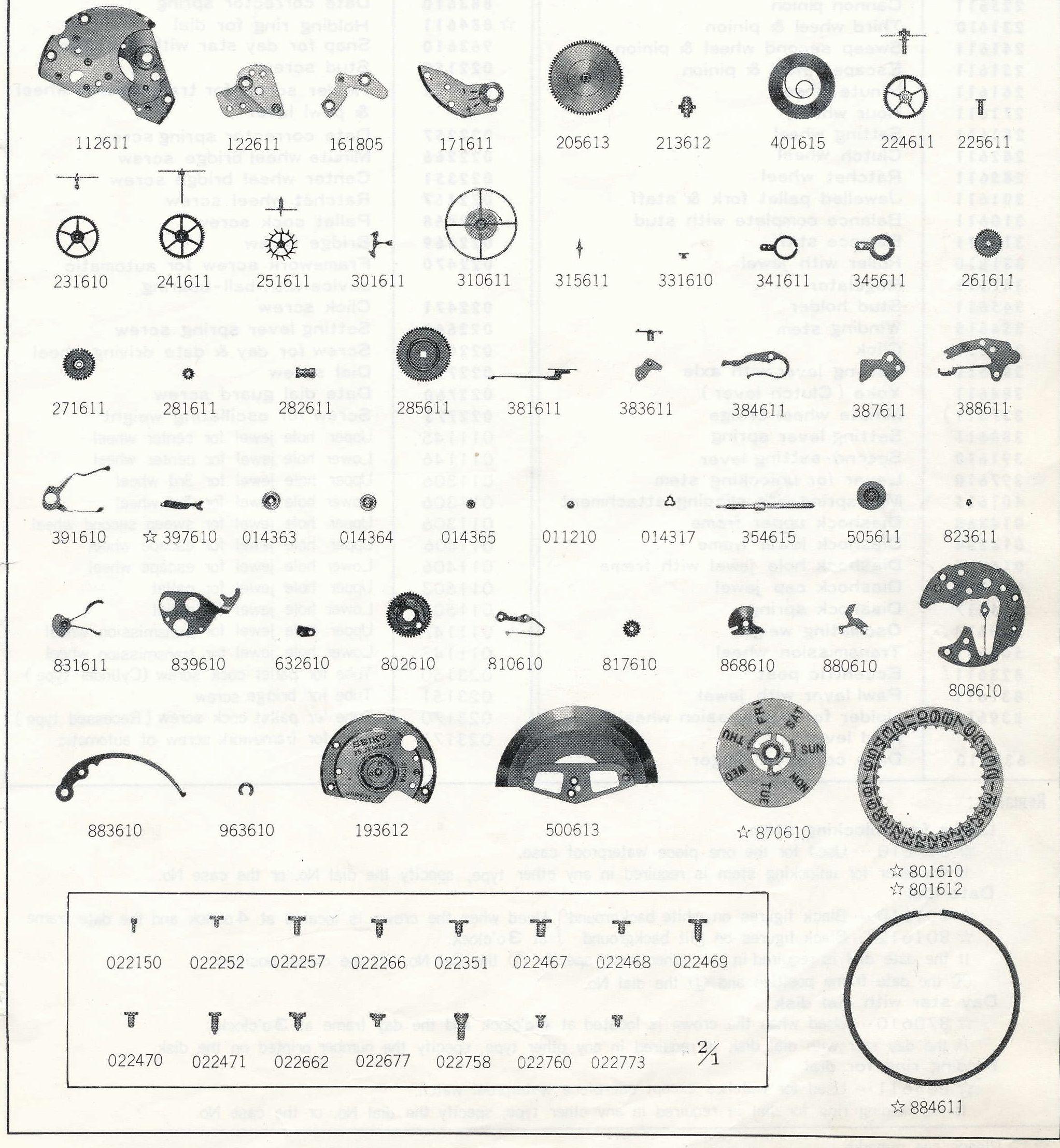 • Seiko 6106A: day, date, hack feature, 2 rotor screws